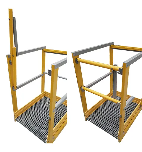 Brede treden en leuningen (ook gemaakt van 100% glasvezel).
