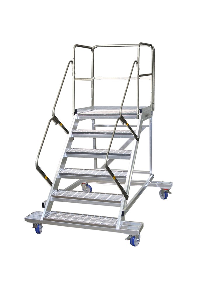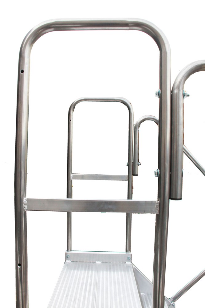 - Verkrijgbaar met treden en platform in aluminium rooster waardoor vloeistoffen, materialen of sneeuw op de grond kunnen vallen terwijl het steunoppervlak schoon blijft.