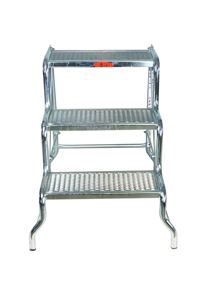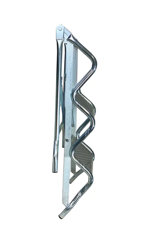 Stevige en resistente kruk met brede treden kan worden opgeklapt voor transport en opslag ter plaatse.