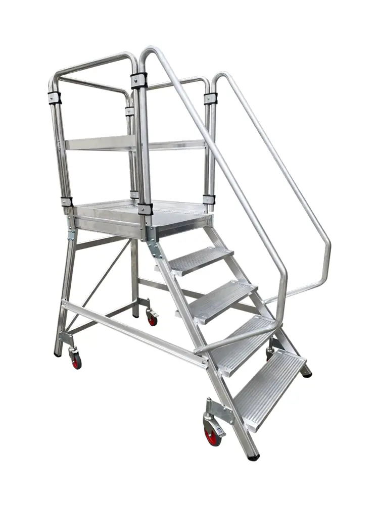 Enkelzijdige bordestrap met wielen en verstevigde treden