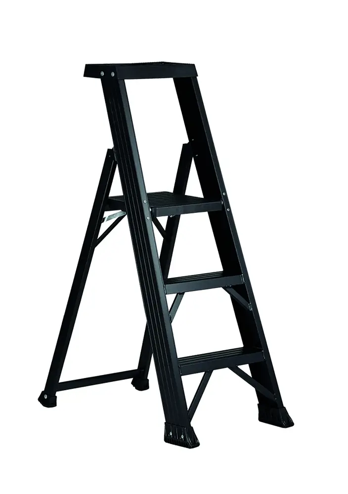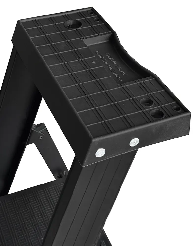 Sgabello a 3 gradini in alluminio verniciato "Total Black" con guardacorpo