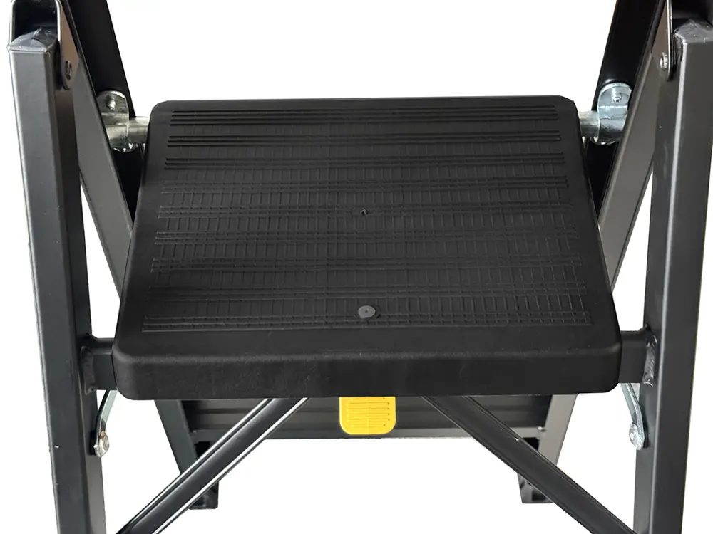 Sgabello a gradini con guarda-corpo progettato per l'utilizzo nei negozi di abbigliamento, negli studi fotografici o in qualsiasi attività dove si abbia l'esigenza di sicurezza ma allo stesso tempo di design ed impatto estetico.