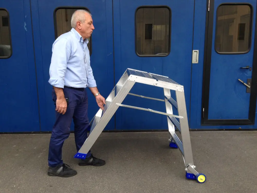 Dubbel getrapte kruk met verhoogde breedte en zeer ruim platform