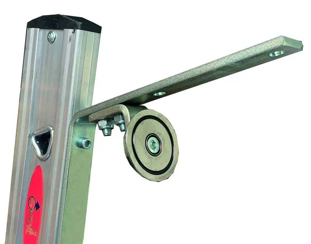 Dankzij 2 speciale magneten met een capaciteit van elk 90 kg wordt de ladder direct aan de zijkant van de vrachtwagen vergrendeld.