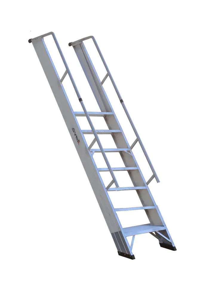 Deze ladder is gemaakt van geëxtrudeerd geribbeld aluminium.