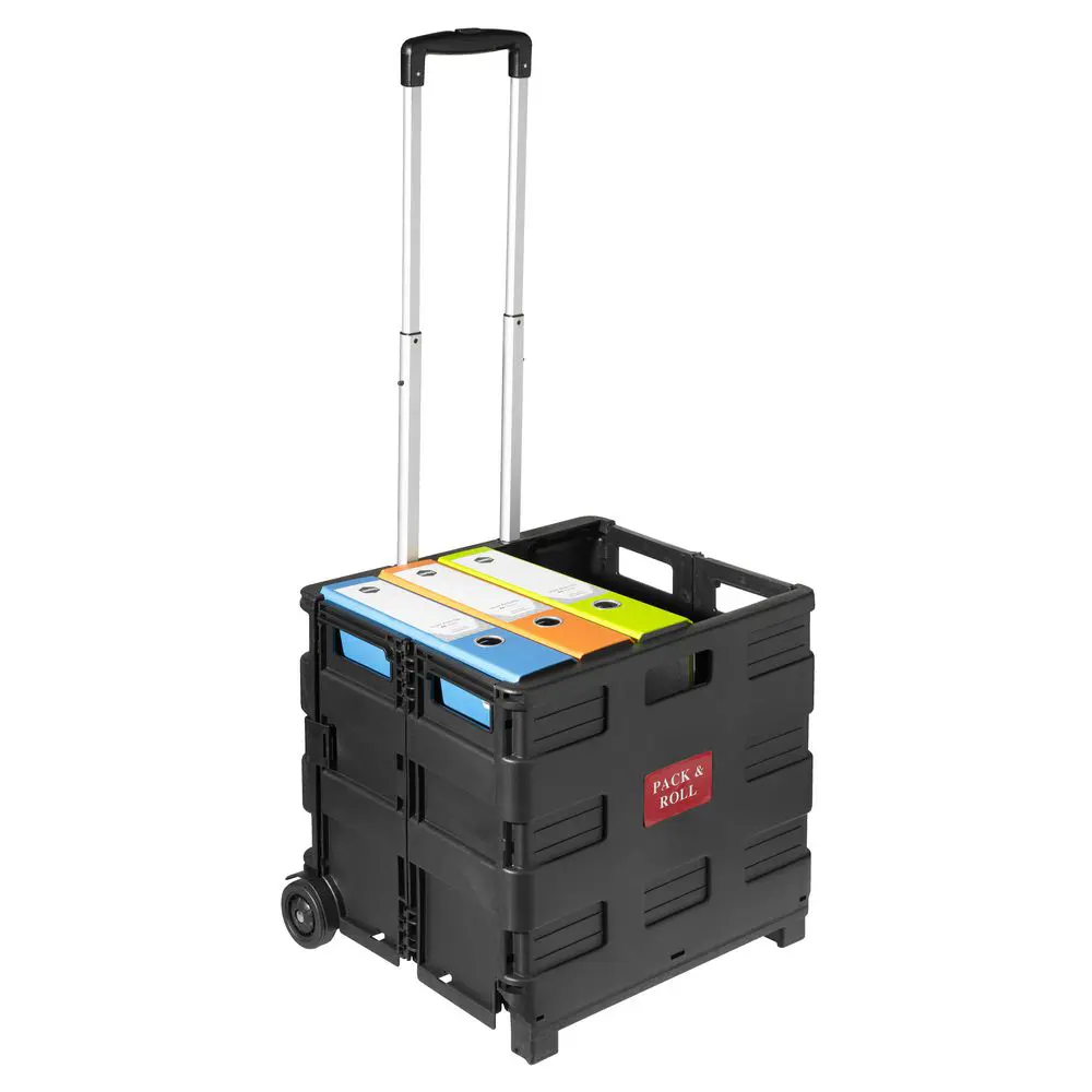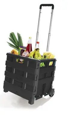 Compacte opvouwbare trolley met een telescopisch handvat voor licht (huishoudelijk) gebruik.