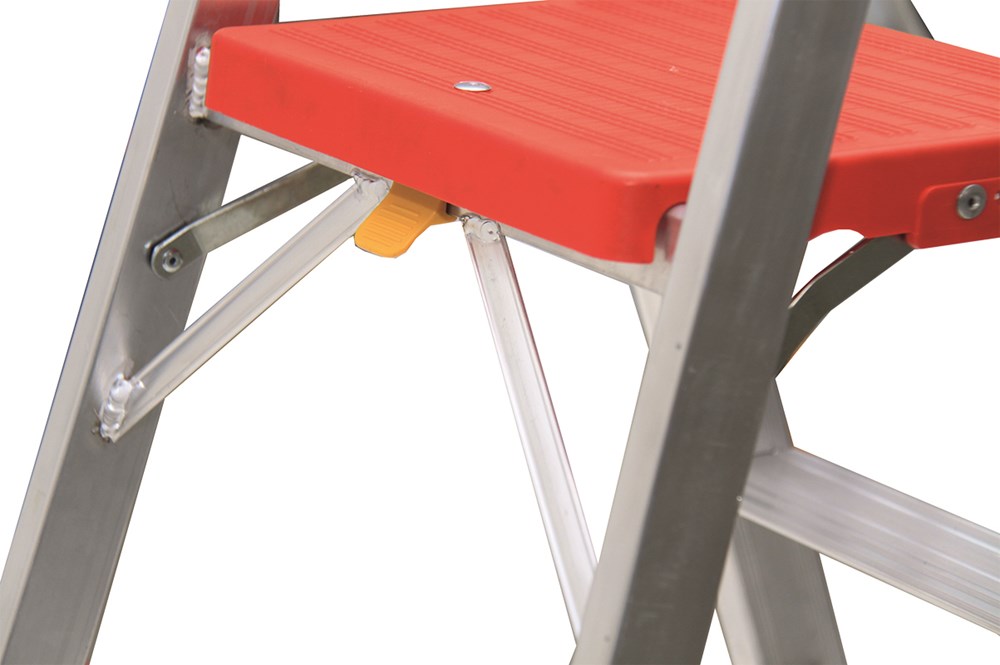 Стремянка из экструдированного алюминия с ребрами жесткости предназначена для непрофессионального и бытового использования. Стойки из прямоугольного профиля 50х25 мм, эргономичные для рук. Стальные шарниры. Стойки и ступени соединены с использованием системы «сэндвич». Задняя рама усилена и сварена с помощью роботизированной техники последнего поколения. Толщина в сложенном положении 12 см.
