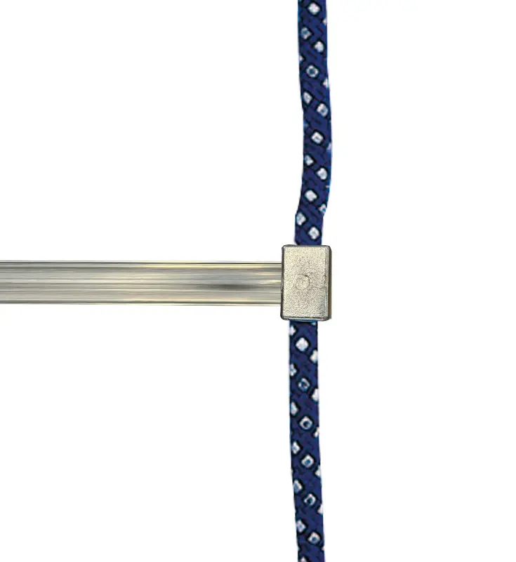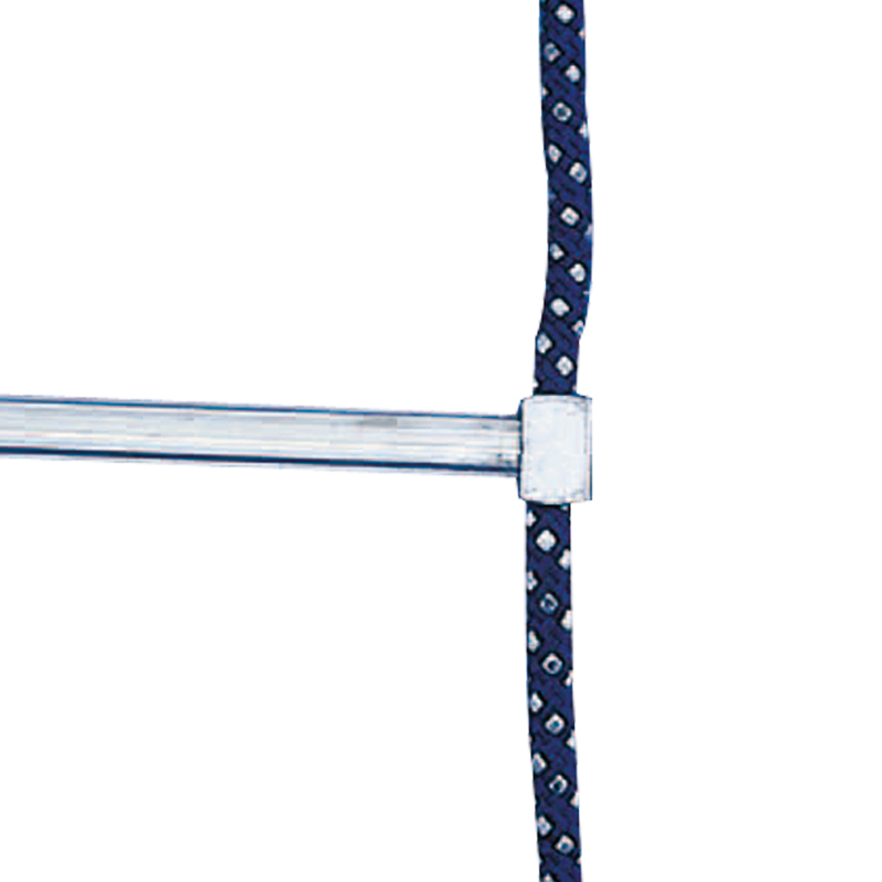 Веревочная лестница с нейлоновыми стойками и нескользящими алюминиевыми перекладинами.