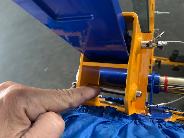 Синий рычаг комплекта можно расположить таким образом, чтобы облегчить подъем с земли и удерживать плиту в подвешенном состоянии для выполнения сборки петель и установки плиты на место. Без этого комплекта стандартный рычаг был бы слишком высоким по отношению к центральной линии небольшой плиты, что затрудняло бы вращение и подъем.