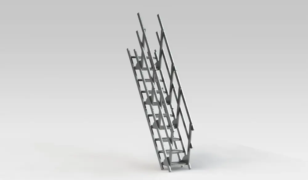 Лестница из ребристого экструдированного алюминия с широкими самовыравнивающимися ступенями.