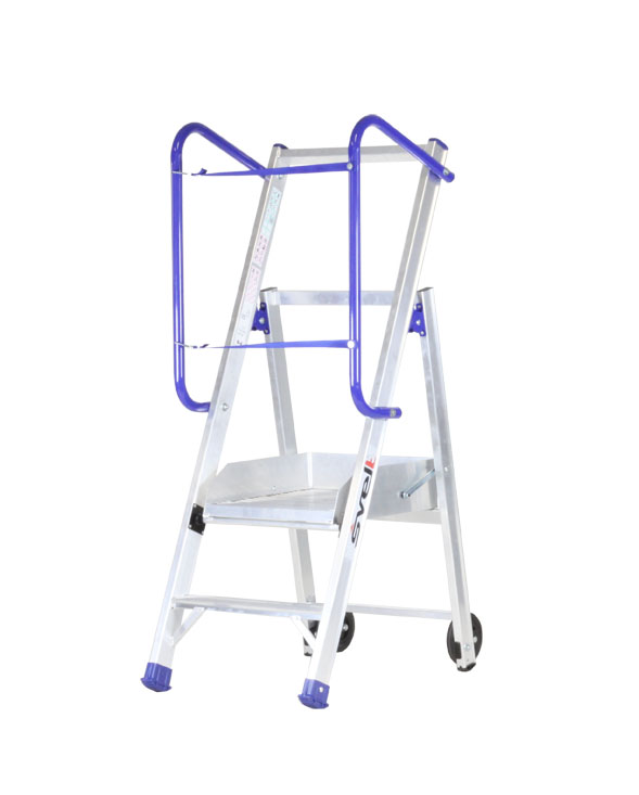 - Усиленная нескользящая алюминиевая платформа (49x44 см) с системой защиты от случайного открывания и бортиком высотой 10 см