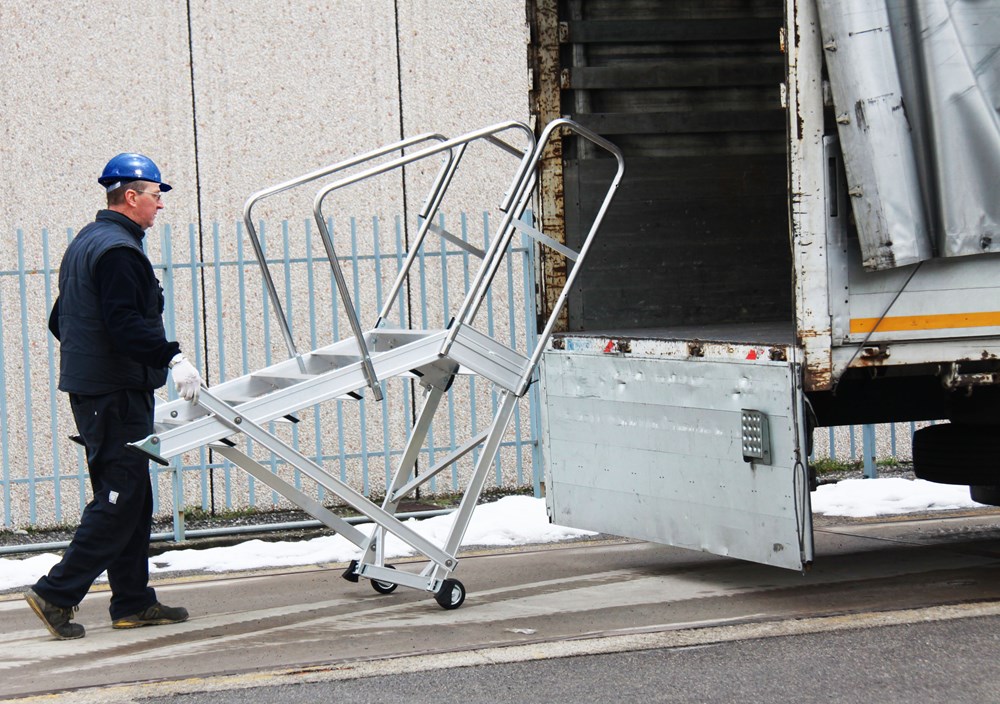 Лестница с платформой для технического обслуживания и доступа в автомобиль с 2 стандартными колесами диаметром 125 мм