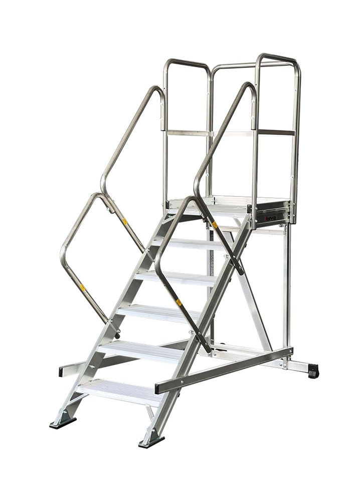 IKARO EURO – это серия профессиональных лестниц с платформой для доступа к транспортным средствам, платформам, железнодорожным вагонам, фальшполам, самолетам или оборудованию в целом. Разработанные для интенсивного использования, они очень прочные и устойчивые, изготовлены из ребристого экструдированного алюминия, сваренного методом TIG. Оператор может выбрать ширину и высоту в соответствии со своими потребностями доступа.