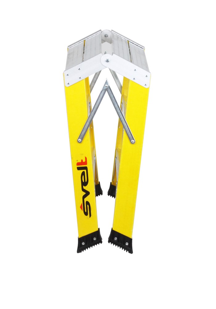 Стремянка-табурет с изолирующими диэлектрическими стойками из стекловолокна и алюминиевыми ступеньками. С двумя секциями доступа, он оснащен большой платформой для удобной и безопасной работы на максимальной высоте.