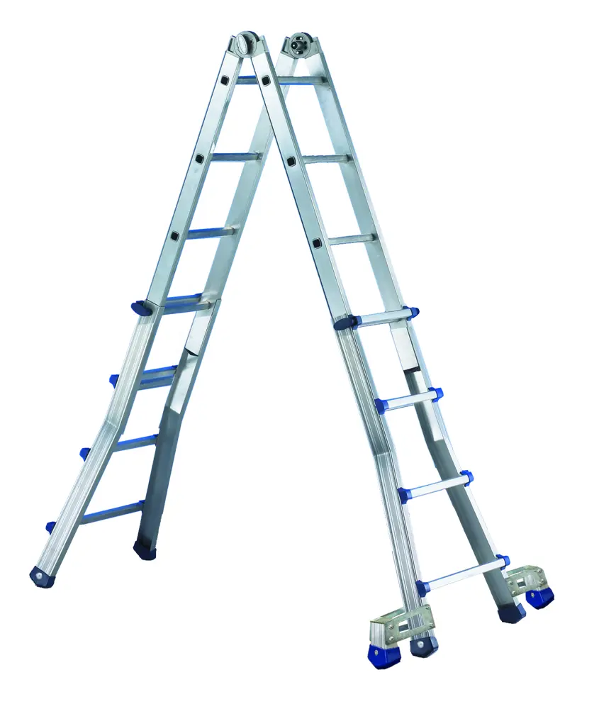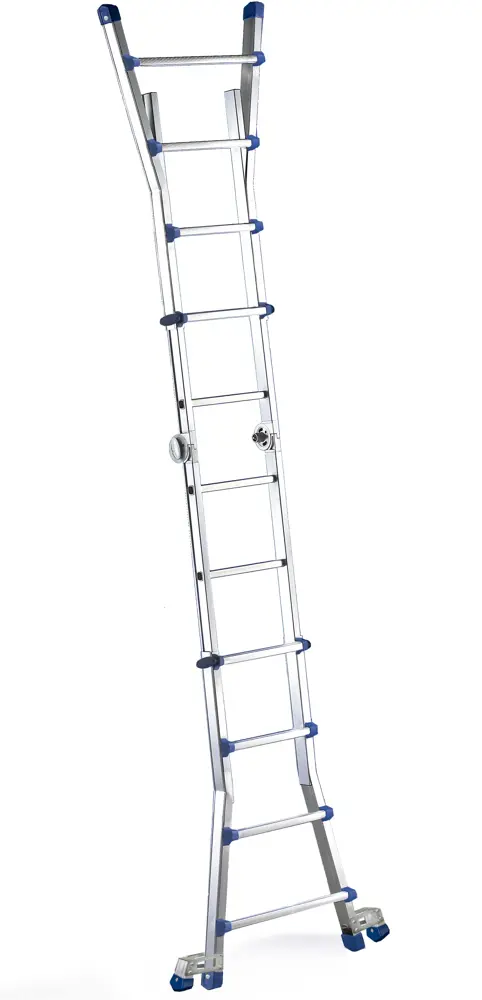 С телескопическим удлинителем его можно использовать как телескопическую опорную лестницу, так и как двойную или хромую.