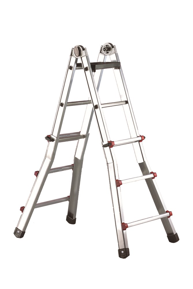 Телескопическая лестница-стремянка изготовлена из экструдированного алюминия с ребрами жесткости, имеет расширенное основание. Создана для профессионального и бытового использования, можно использовать как приставную, стремянку или устанавливать на лестничных пролетах.