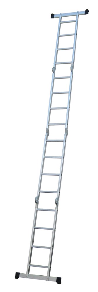 Многопозиционная лестница из ребристого экструдированного алюминия, которую можно использовать как стремянку и как приставную лестницу.