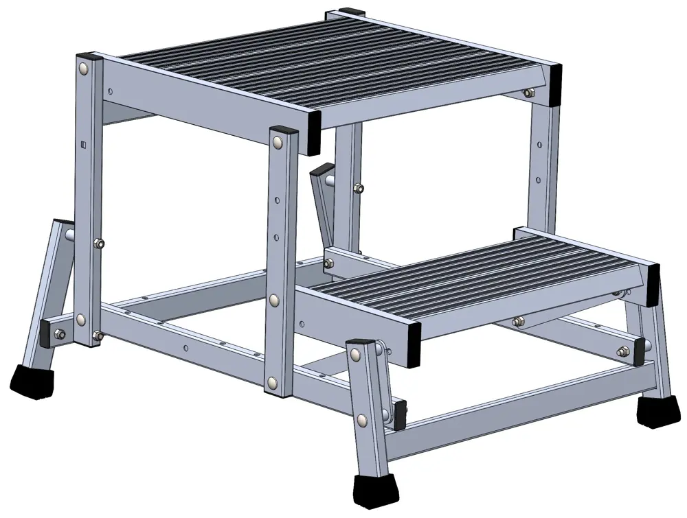Привинчивающийся промышленный табурет с увеличенной платформой глубиной 40 см, широкими ступенями и возможностью настройки с помощью различных дополнительных аксессуаров