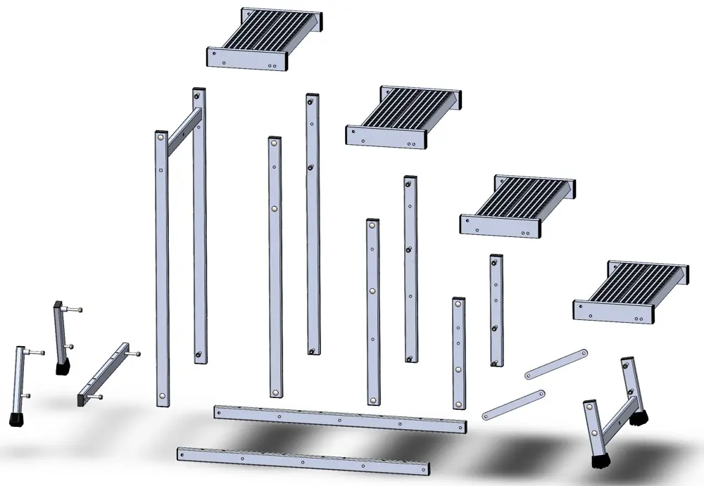 Профессиональный табурет с 2–4 ступенями из экструдированного алюминия с секцией для лазания.