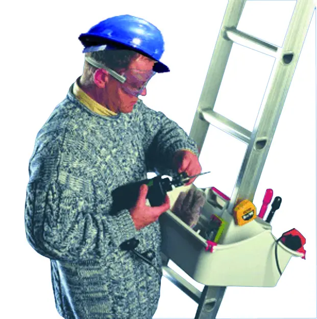 Устанавливается на ступеньки любой опорной лестницы, чтобы предметы и инструменты всегда были под рукой, не покидая рабочего места.