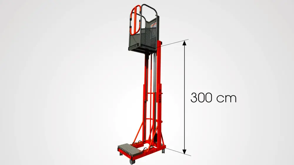 Телескопическая платформа из алюминия, окрашена эпоксидной порошковой краской.