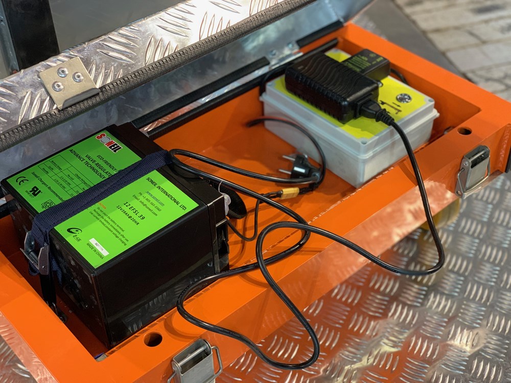 Он питается от гелевой батареи 12 В 33 Ач. Сертификация: EN280 и CE