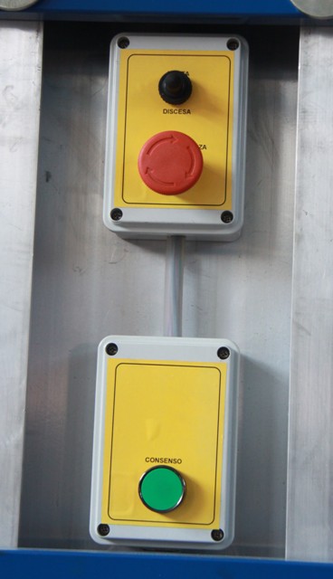 - Органы управления и аварийная кнопка на корзине и на раме