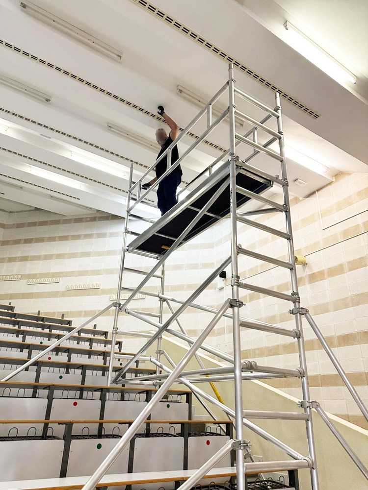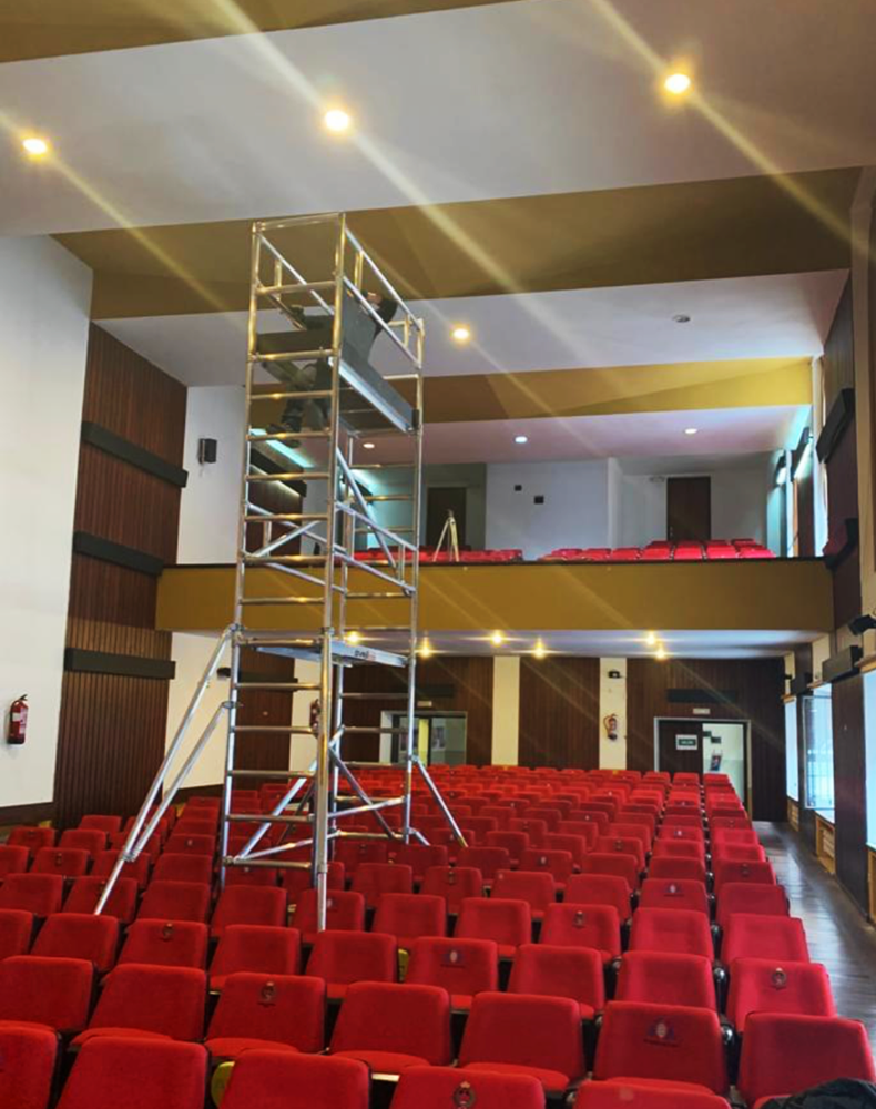 TEMPO TECH CINEMA — это алюминиевые строительные леса, соответствующие европейским стандартам UNIEN1004.1.2, идеально подходящие для использования в присутствии трибун, наклонной площадки, рядов кресел или кресел.