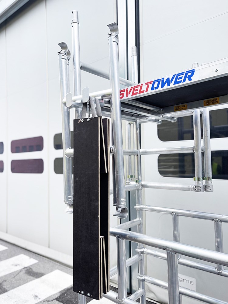 После разгрузки базовый модуль Sveltower превращается в тележку, способную перевозить все необходимые для сборки компоненты на максимальной высоте на рабочее место.