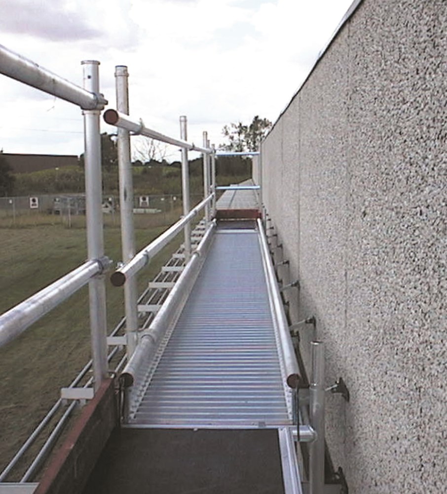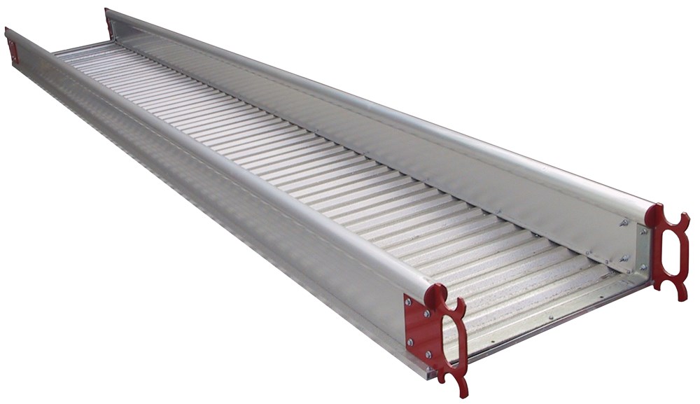 Алюминиевый трап устойчив к коррозии, быстро монтируется. Доступные длины от 4 до 8 м. Его можно разместить как проход между двумя опорами или подмостками. Каждый трап оснащен стальными крюками на концах для крепления к трубам Ø55 мм (подмости TEMPO). Крепление к стене с помощью кронштейнов обязательно.