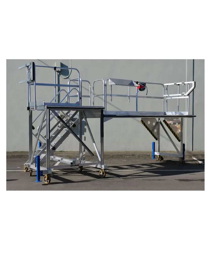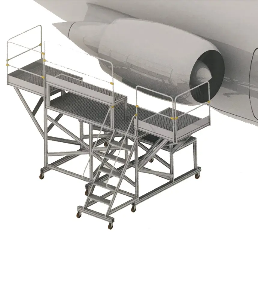 Специальные стальные или алюминиевые конструкции, образующие различные переходы на разной высоте для обслуживания или строительства самолётов.