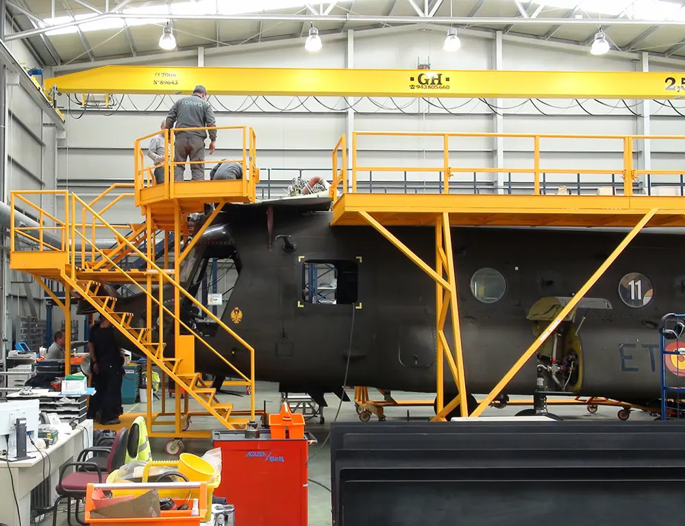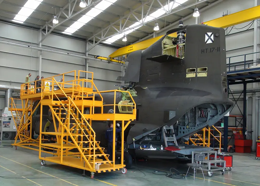 Специальные стальные или алюминиевые конструкции, образующие различные пешеходные дорожки на разной высоте для обслуживания или строительства вертолётов.