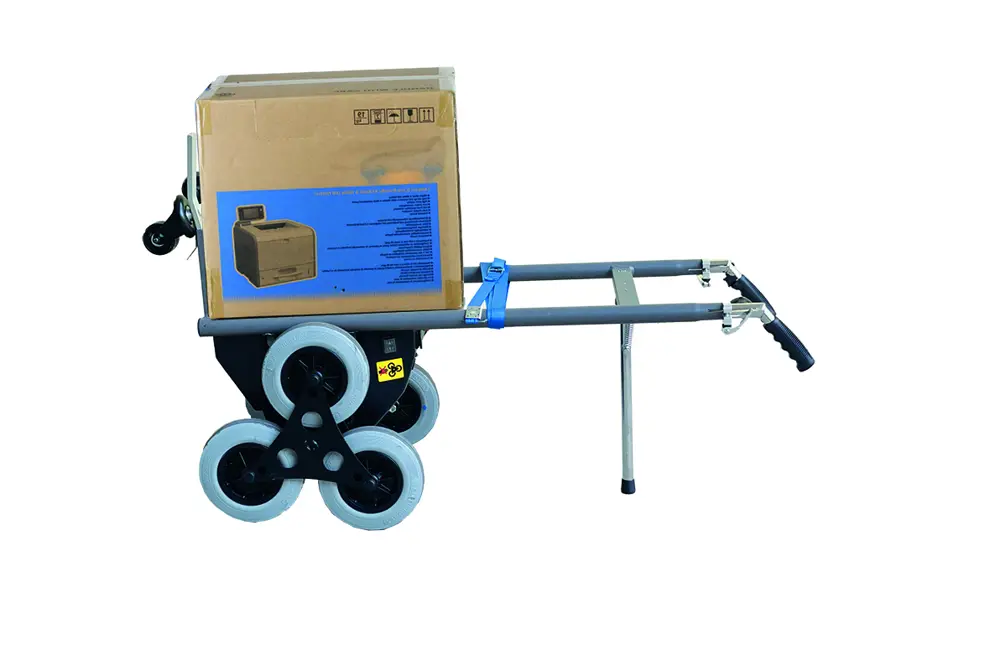 - Компактная модель с высоким центром тяжести для облегчения транспортировки по лестницам, снижая эффект опрокидывания при низкой и тяжёлой нагрузке (цементные мешки, стиральные машины и т. д.)