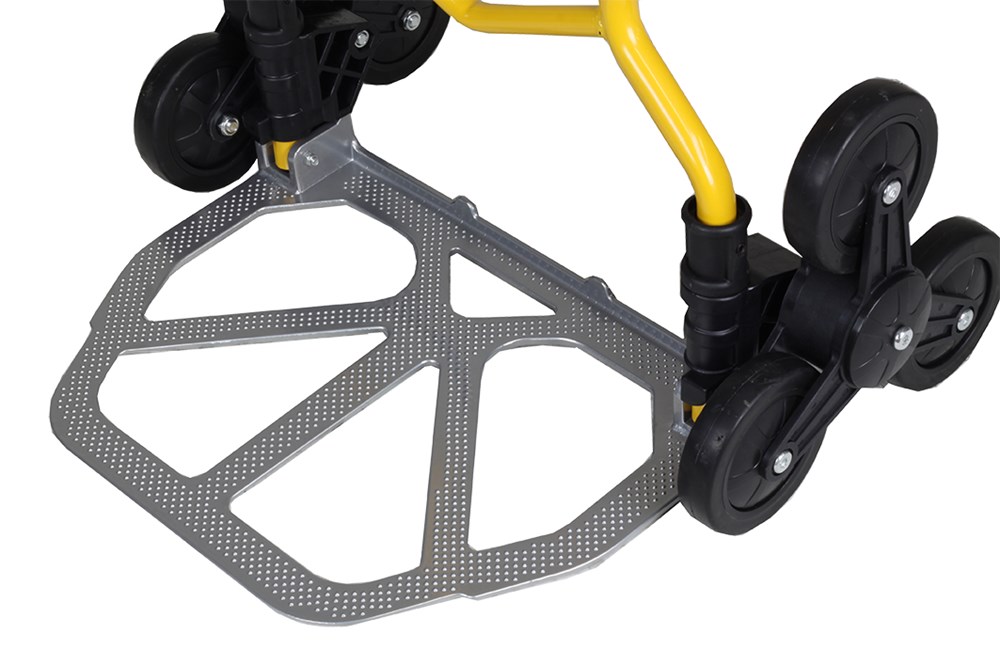 Складная стальная тележка для подъема по лестнице, окрашена желтой эпоксидной порошковой краской.
