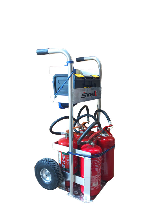 Профессиональная алюминиевая тележка для перевозки огнетушителей.