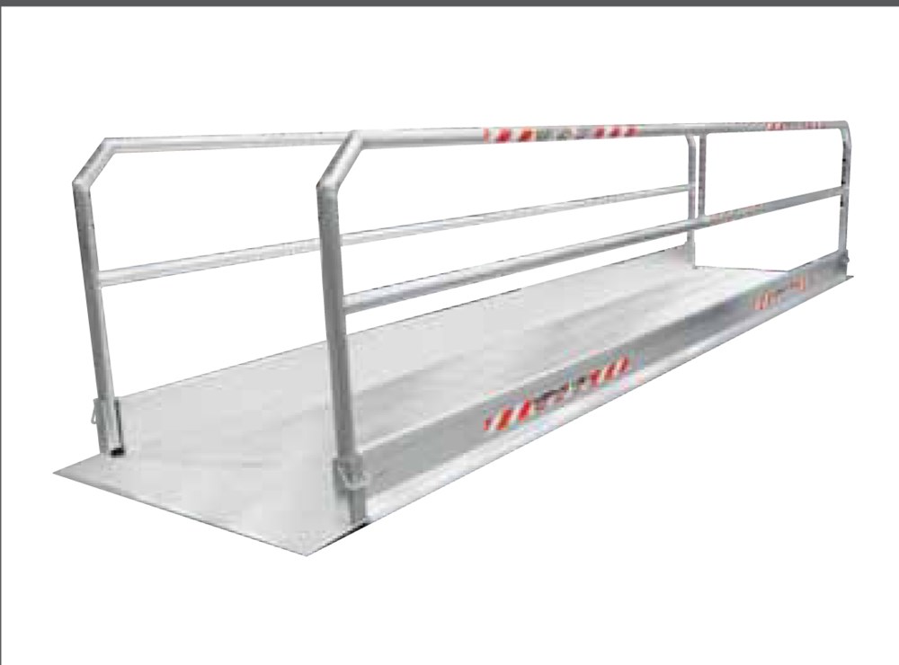 Пешеходные трапы с поручнями этой серии, выполненные из специальных экструдированных алюминиевых профилей, позволяют преодолевать барьеры любому человеку архитектурные, такие как раскопки или рвы.