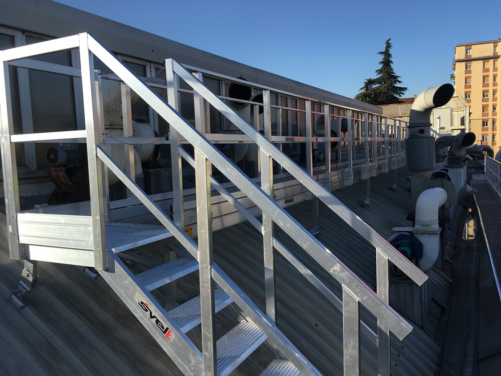 Алюминиевые трапы Svelt позволяют обезопасить проходы на непрочных или скользких крышах.