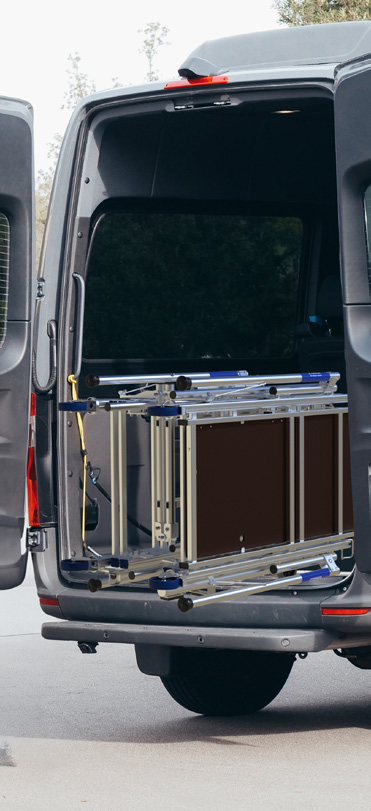 Після завантаження базовий модуль перетворюється на візок, здатний зручно дістатися до робочого місця.