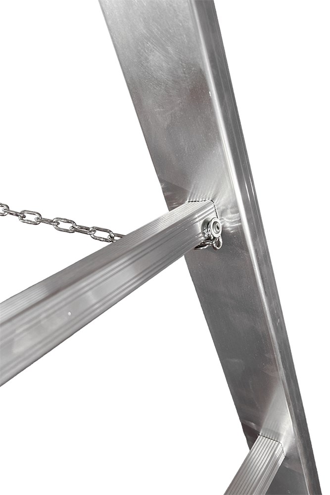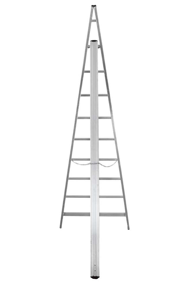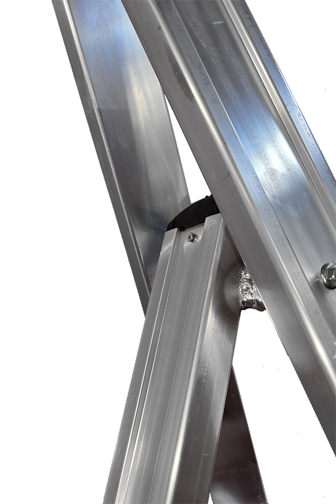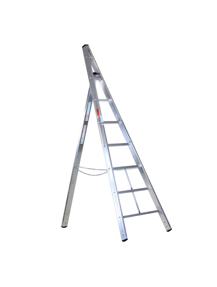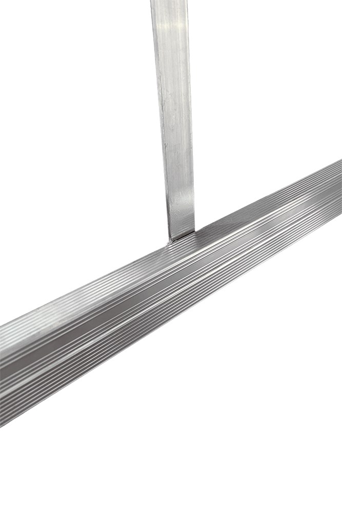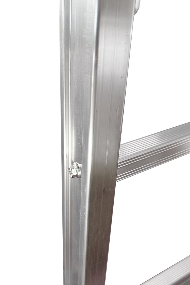 Виготовлена з екструдованого ребристого алюмінію з вертикальними стійками, які сходяться, і колоною, що дозволяє використовувати драбину в положенні стрем'янки.