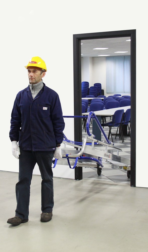 Пересувна драбина з майданчиком відповідає новим європейським стандартам UNIEN131/7, забезпечує захист на 360°. Удосконалена система захисту від перекидання включає в себе телескопічні стабілізатори, які можна закрити, щоб Ви могли працювати навіть біля стіни.