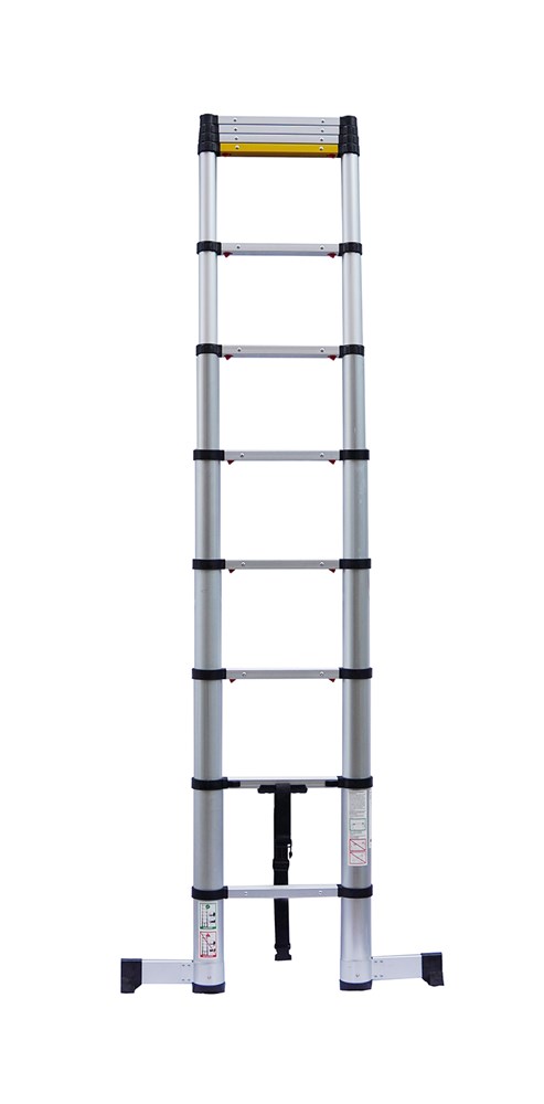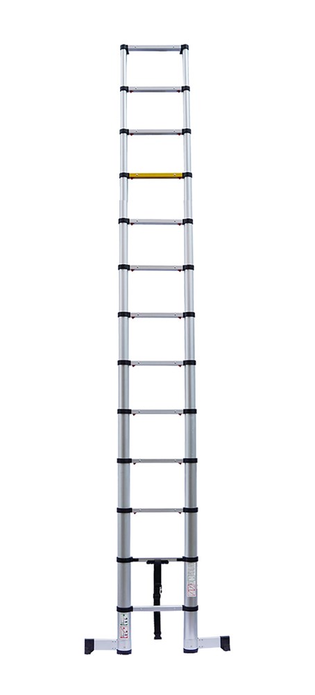 Надкомпактна телескопічна драбина, 11 сходинок, професійне використання, широкі сходинки, надкомпактність, розкладний стабілізатор