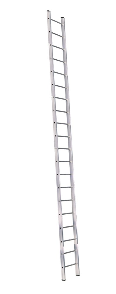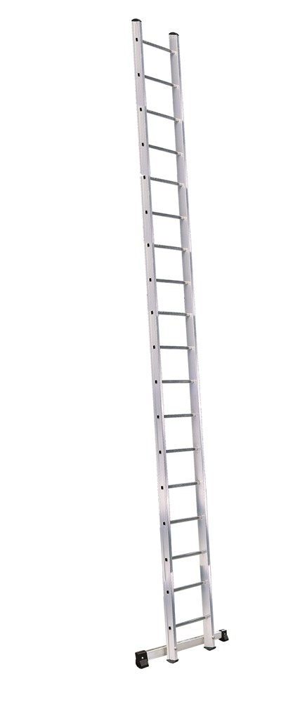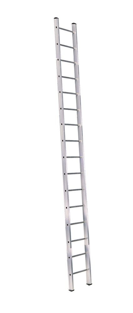 Приставна професійна драбина з одностороннім підйомом. Виготовлена з екструдованого алюмінію з рифленими поперечками. Відповідає стандартам EN131, протестовано TUV. Відмінне співвідношення ціна/якість. Прості міцна та легка драбина шириною всього 42,3 см.