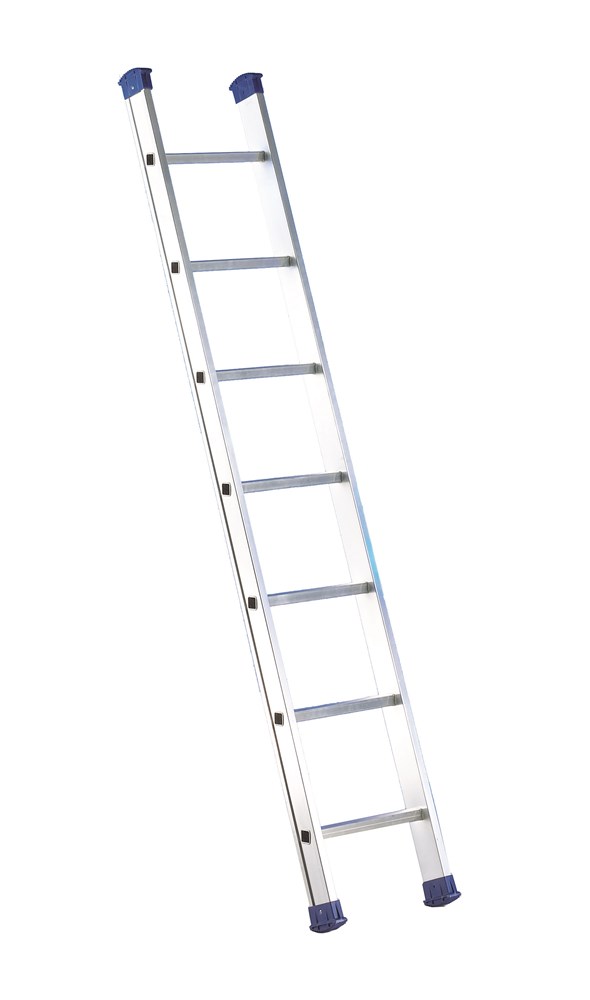 Проста приставна драбина з поперечками, легка та міцна. З торців оснащена збільшеними опорними наконечниками, закріпленими заклепками. Таким чином, наконечники не губляться, і драбину можна використовувати навіть у перевернутому положенні. Ширина драбини 42,3 см.