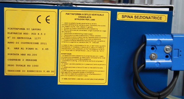 - Елементи керування та аварійна кнопка на корзині та на рамі