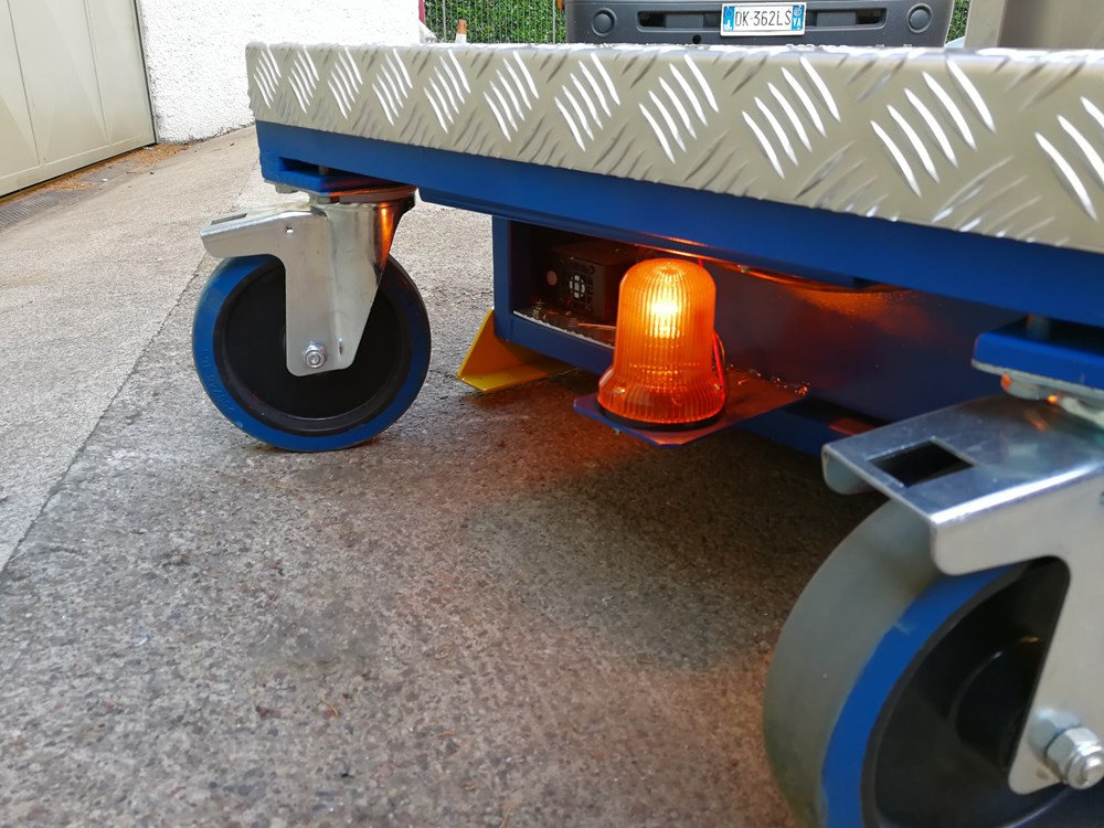 Полиця для вантажів знаходиться у верхній частині колони. База підйомника була спеціально розроблена так, щоб вона могла проходити під обладнанням, лініями різання і полицями, щоб можна було працювати з нависанням 70 см.