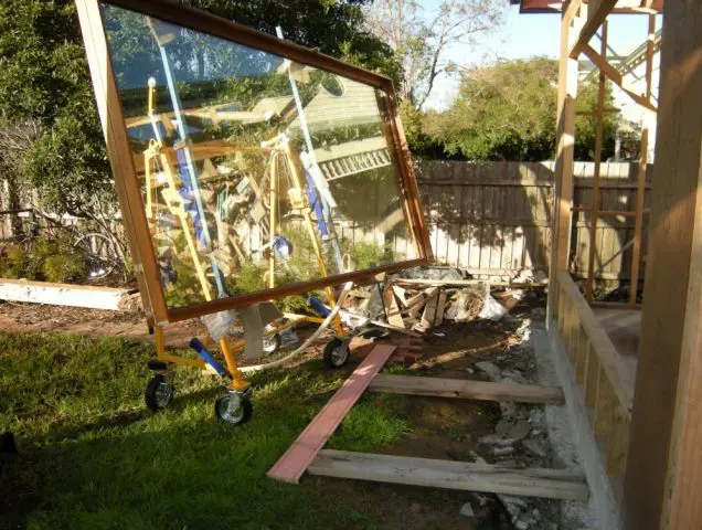 - Дозволяє транспортувати довгі листи скла, проходячи, наприклад, через двері офісу, а потім повертати їх для горизонтального встановлення
