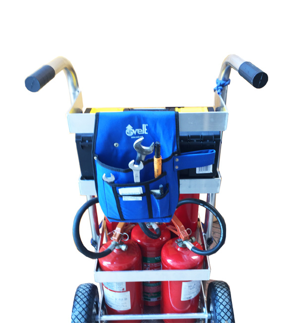 Виготовлений з міцного екструдованого алюмінію, компактний і транспортабельний, візок спеціально розроблений для фахівців з обслуговування вогнегасників.