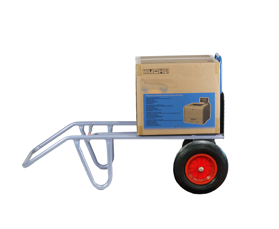 Поставлений на землю ручний візок можна завантажувати горизонтально, оскільки ручки утримують його на одному рівні з колесами.