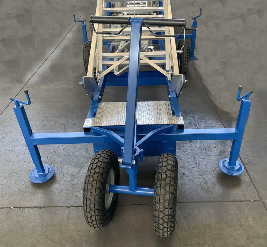 Основна конструкція (рама) виготовлена з пофарбованої сталі, оснащена 2 вирівнювальниками (+2 опціонально) та 4 суцільними обертовими гумовими колесами діаметром. 255 мм з гальмом (також підходить для гравію).