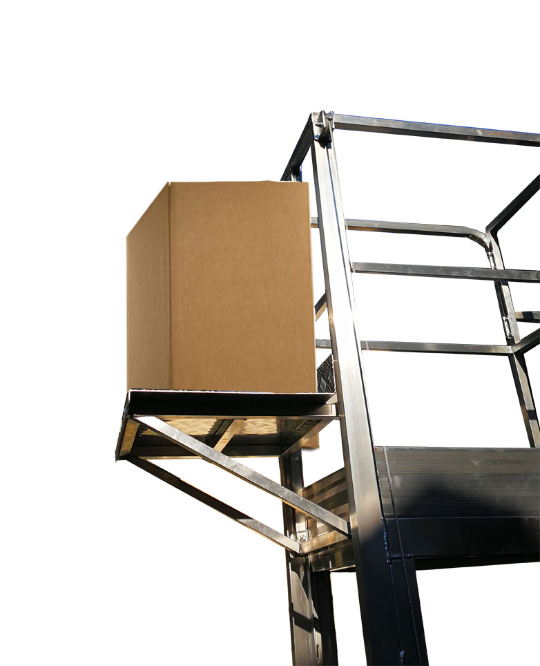 Платформа розміром 60x70 см, обладнана стійкою для посилок, перилами та поручнем висотою 1 метр.